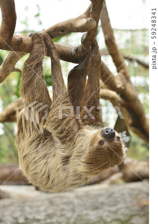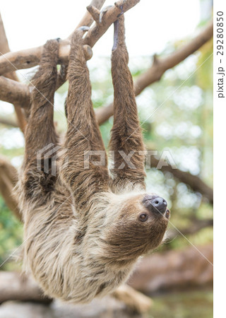 【ナマケモノ】木の枝にぶら下がるフタユビナマケモノ
