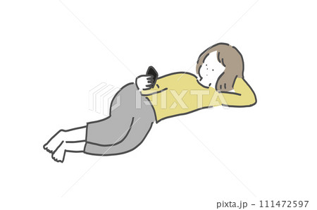 うつ伏せで寝ているぽっちゃり体型の女性のイラスト素材