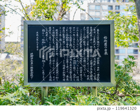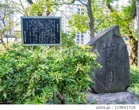 北の丸公園にある「怡和園」の石碑の解説板(東京都千代田区)