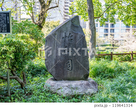 北の丸公園にある「怡和園」の石碑(東京都千代田区)