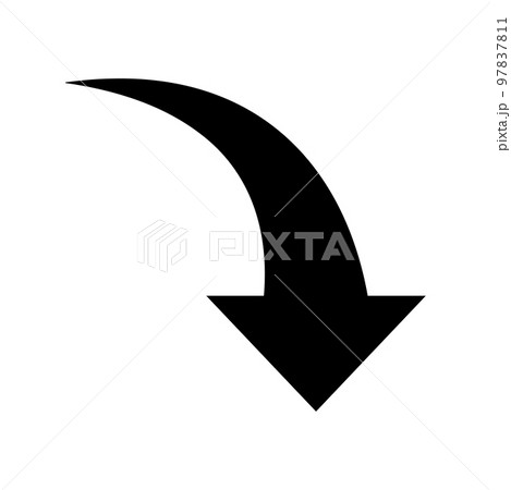 右下がりの黒い矢印 (下向きカーブ・不景気・下落)