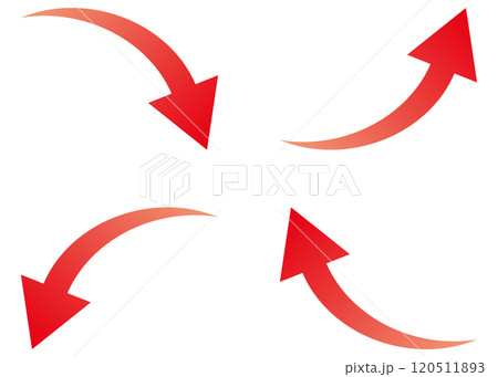 赤グラデーションのカーブ矢印イラストセット