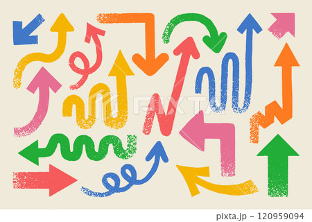 手描き風のカラフルな矢印のアイコンセット