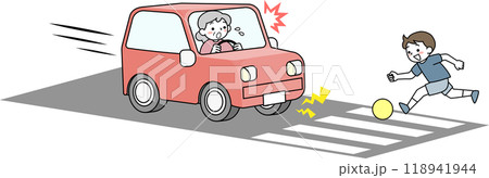 車道に飛び出す子供と急停車するシニア女性のドライバー