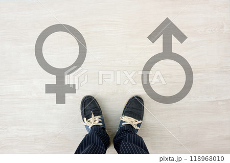 性別に悩む人物の足下