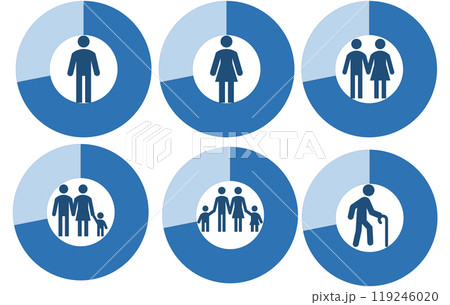 円グラフのグラフィック素材のアイコンイラストセット