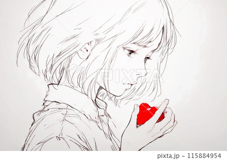 マイハート(ハートを手に持つ寂しげな表情の少女)