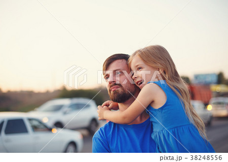 Family. Father and daughter at highway