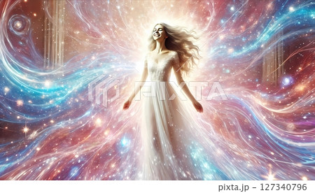 白いドレスに身を包み、幸せを噛みしめる美しい女性と幸せのオーラ