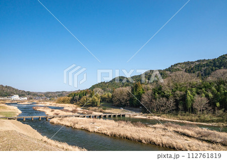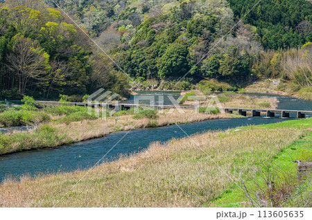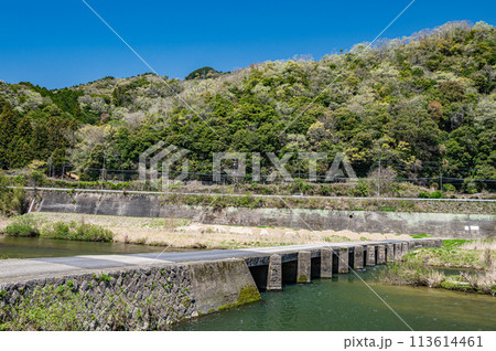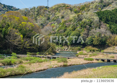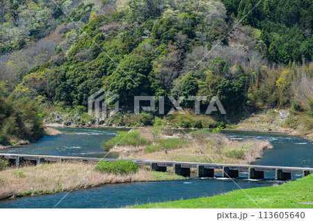 京都の清流木津川の沈下橋 恋路橋 京都府南山城村