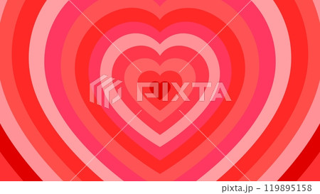 Romantic heart tunnel background. Vector valentine day frame with concentric heart shapes or dimension layers in red or pink hues, symbolizes journey of love. Wallpaper or romance vintage backdrop
