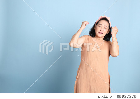 The woman screaming with open mouth isolated on blue background, concept face emotion