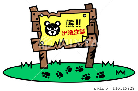 獰猛で危険生物の熊の出没を警告して注意する看板イラスト