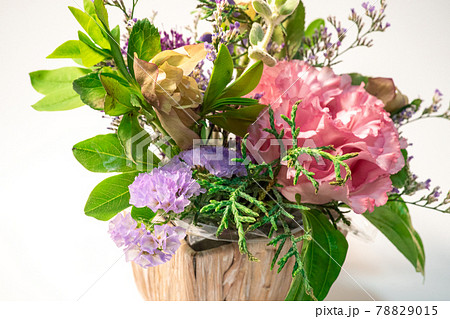 6月の花 トルコ桔梗 夕霧草 フラワーアレンジメント スタジオ撮影