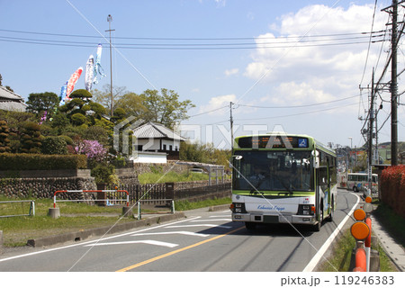 県道川越日高線を行く国際興業バス(埼玉県日高市)
