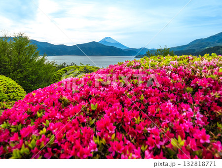 神奈川県 初夏の恩賜箱根公園の景観(ツツジと富士山) 5月