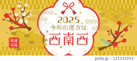 2025年(令和七年) 節分・恵方 西南西の方位磁針のバナーイラスト【年号はんこ】