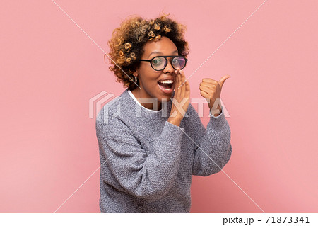 Young african american woman with hand on mouth telling secret or rumor, whispering.