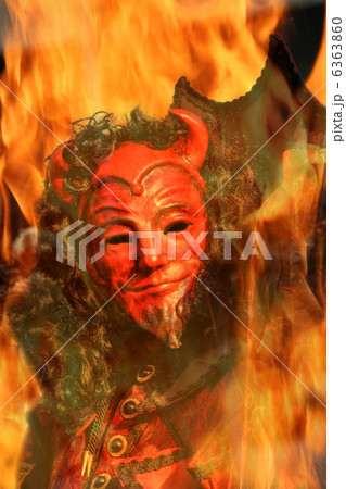 Devils face through the flames.