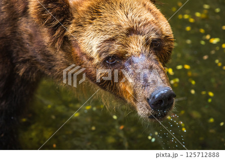 Brown Bear face close up, fur wet and matted at Dehiwala Zoo, Sri Lanka