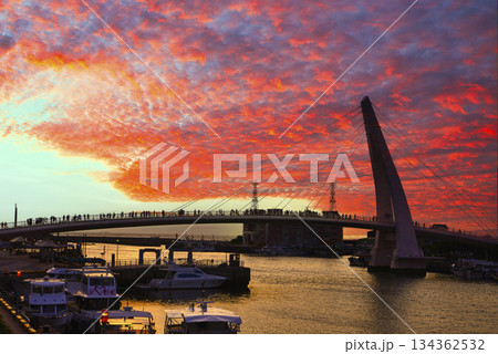 台湾・淡水の 漁人碼頭の美しい夕焼け