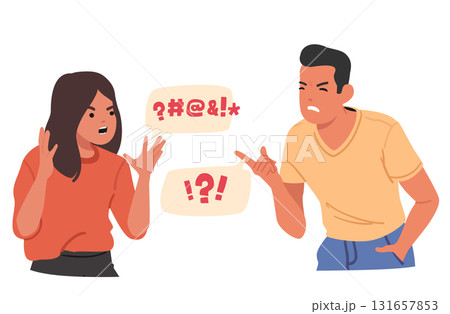 Aggressive furious man and woman yelling and quarrelling loudly with angry irritated inner child