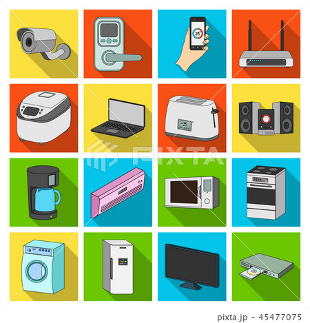 Smart home appliances flat icons in set collection for design. Modern household appliances vector