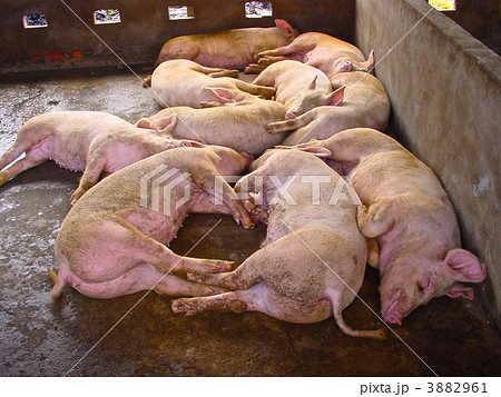 豚舎で眠るブタたち(ベトナム)