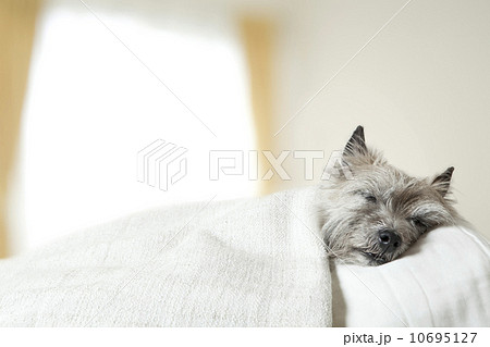 【睡眠イメージ】お昼寝をする犬。ペット。ミニチュアシュナウザー。
