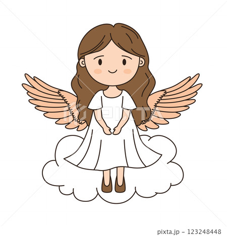 Cheerful Beautiful Cute Winged Little Girl Angel Cartoon Character on Cloud in the Sky