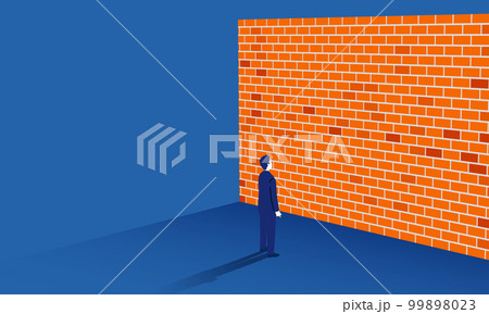 矢印の上に立つ男性と壁のイラスト、ベクター