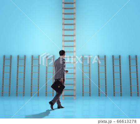 Businessman climbing career ladder in business success concept