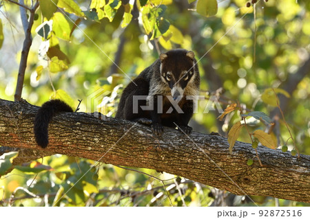 木陰でのんびりとくつろぐ、コスタリカのかわいい動物ハナグマ