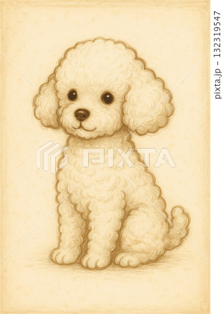 レトロタッチのプードルイラスト|優しい線で描かれた癒しの犬