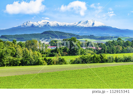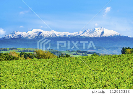 北海道 美瑛の丘パッチワークの路から望む大雪山連峰