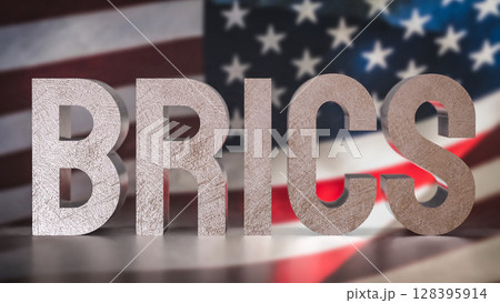 The Brics text on USA flag for Business concept 3d Rendering.