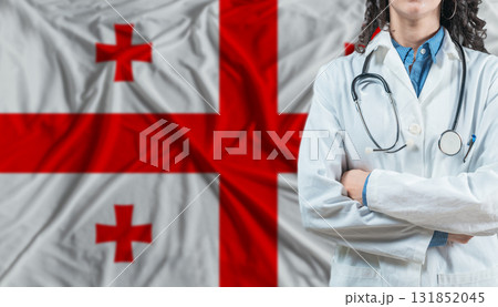 Medical professional on Georgia flag. Healthcare and wellness in Georgia, Concept