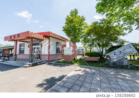 北海道帯広市 人気の観光地 晴天の旧国鉄広尾線 愛国駅にあるオブジェ