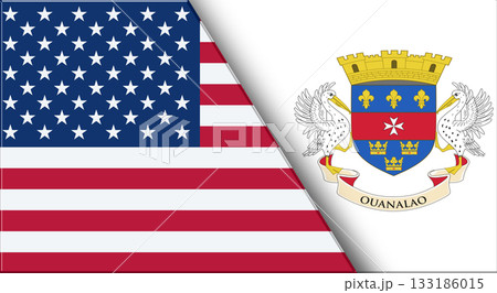 Flags of USA and Saint Barthelemy. 3D illustration. National flags