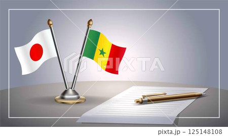 Small national flag of Japan and Senegal flag Relation, Template Vector Illustration