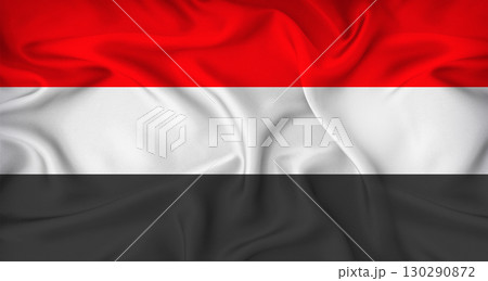 Realistic Yemen flag waving. Close up of flag of Yemen with cloth texture