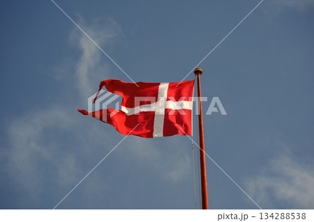 denmark flag waving in blue sky background