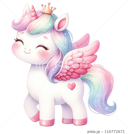 Fantasy pretty white unicorn with colorful mane