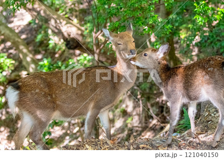 ヤクシカの親子 愛撫 世界自然遺産屋久島(秋