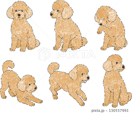 お座りするトイプードルのイラストセット