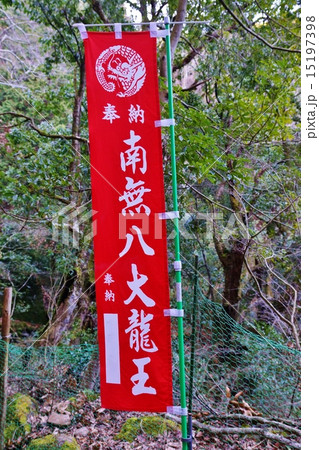 マイナー観光スポット観光案内・愛鷹山水神の「南無八大龍王」の赤い幟・縦位置