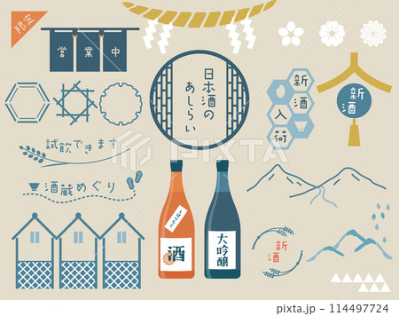 日本酒に関するデザイン・あしらい・モチーフのイラストセット
