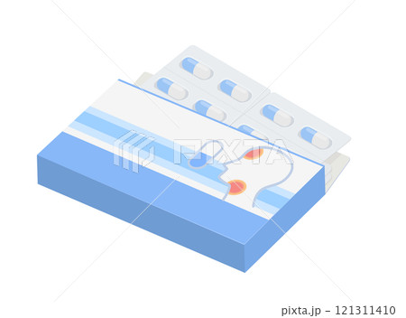 風邪やインフルエンザに治療薬 薬剤 薬のイラスト Medicine for flu, cold