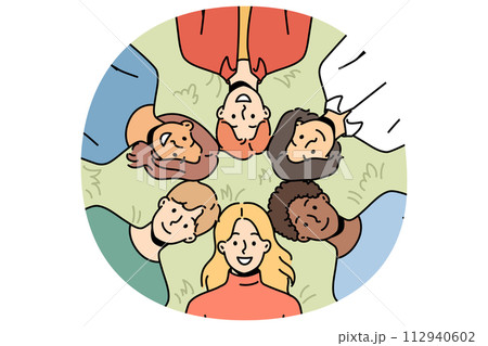 Smiling people relax together in park