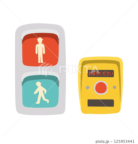 手描きのカワイイ横断歩道の信号機の押しボタンのイラスト